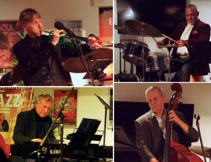 Paul Higgs’ Shades of Miles at East Grinstead Jazz Club, Chequer Mead Theatre, East Grinstead, 4 February 2025. Paul Higgs (trumpet); Adrian York (piano); Paul Whitten (bass); Vince Dunn (drums)